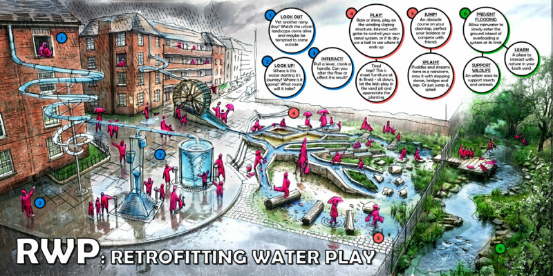 RWP: Retrofit Water Play shows how housing estates can transform necessary water infrastructure into a shared outdoor space full of play and discovery changing the game by building play into the everyday fabric of home.