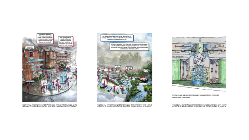 RWP: Retrofit Water Play proposes a radical shift: instead of sending rainwater straight into drains, estates can channel it into playful, ecological public spaces.